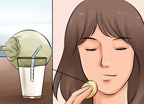 -Thư giãn 20 phút để nước dừa trên làn da khô rồi rửa sạch với nước ấm.
